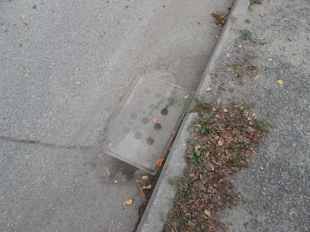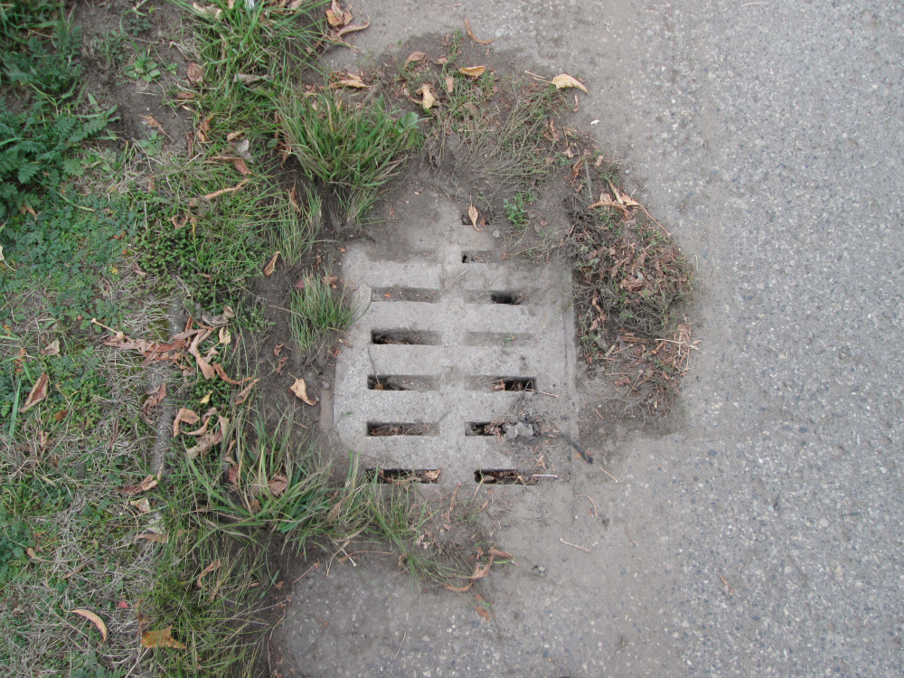 Infrastruktura : zarośnięty chodnik Infrastruktura : zatkana kanalizacja deszcz.