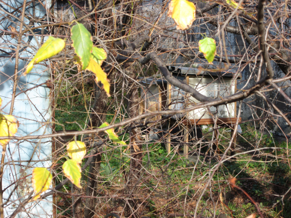 Pomiędzy garażami ukryte dwa dzikie ule. Uwaga w cieplejsze dni pszczoły dość agresywne.