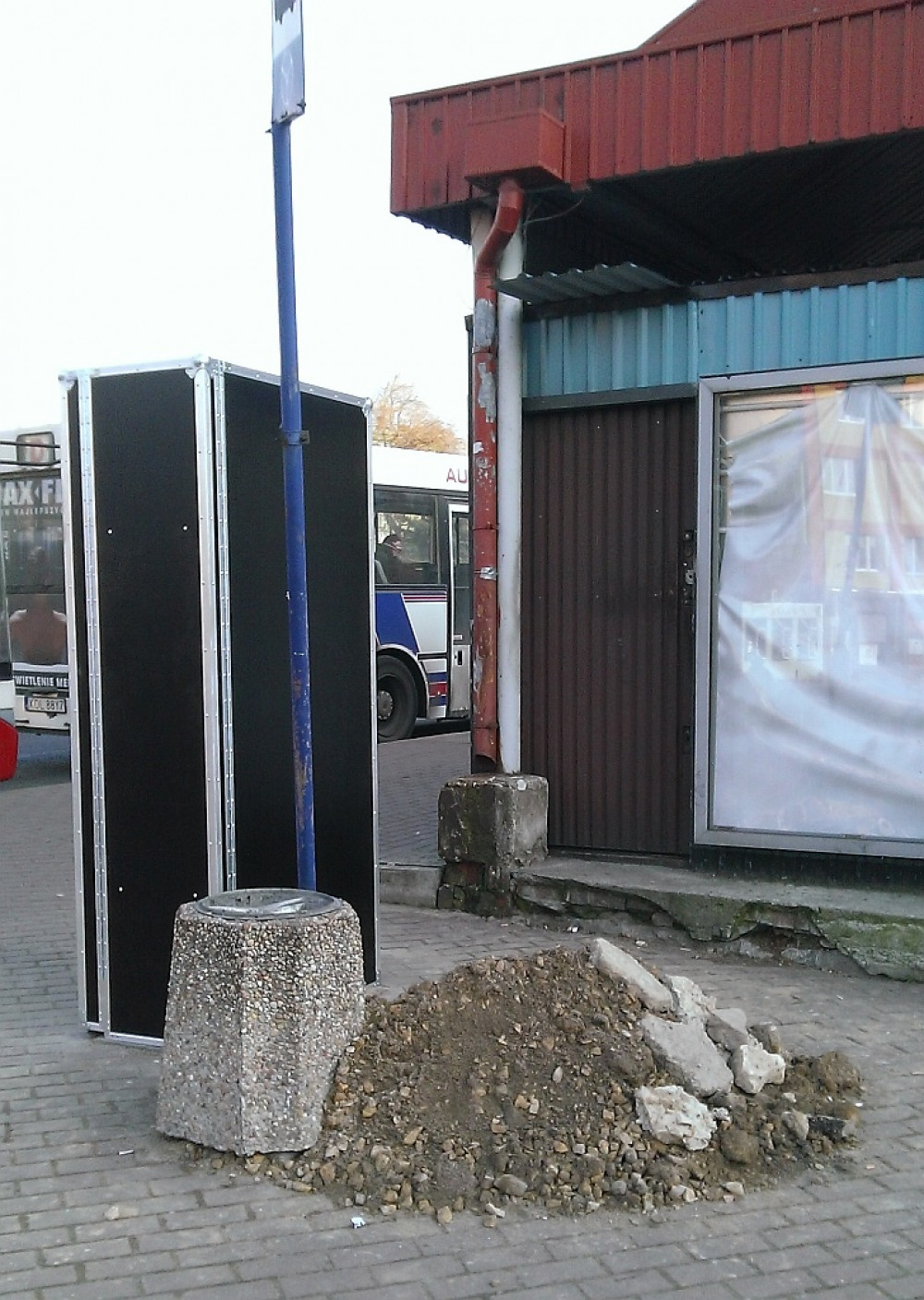 Atak KZK GOP czyli monterzy ŚKUP rozgrzebali chodnik ale ziemi i wyrwanych z chodnika kostek nie byli uprzejmi usunąć.