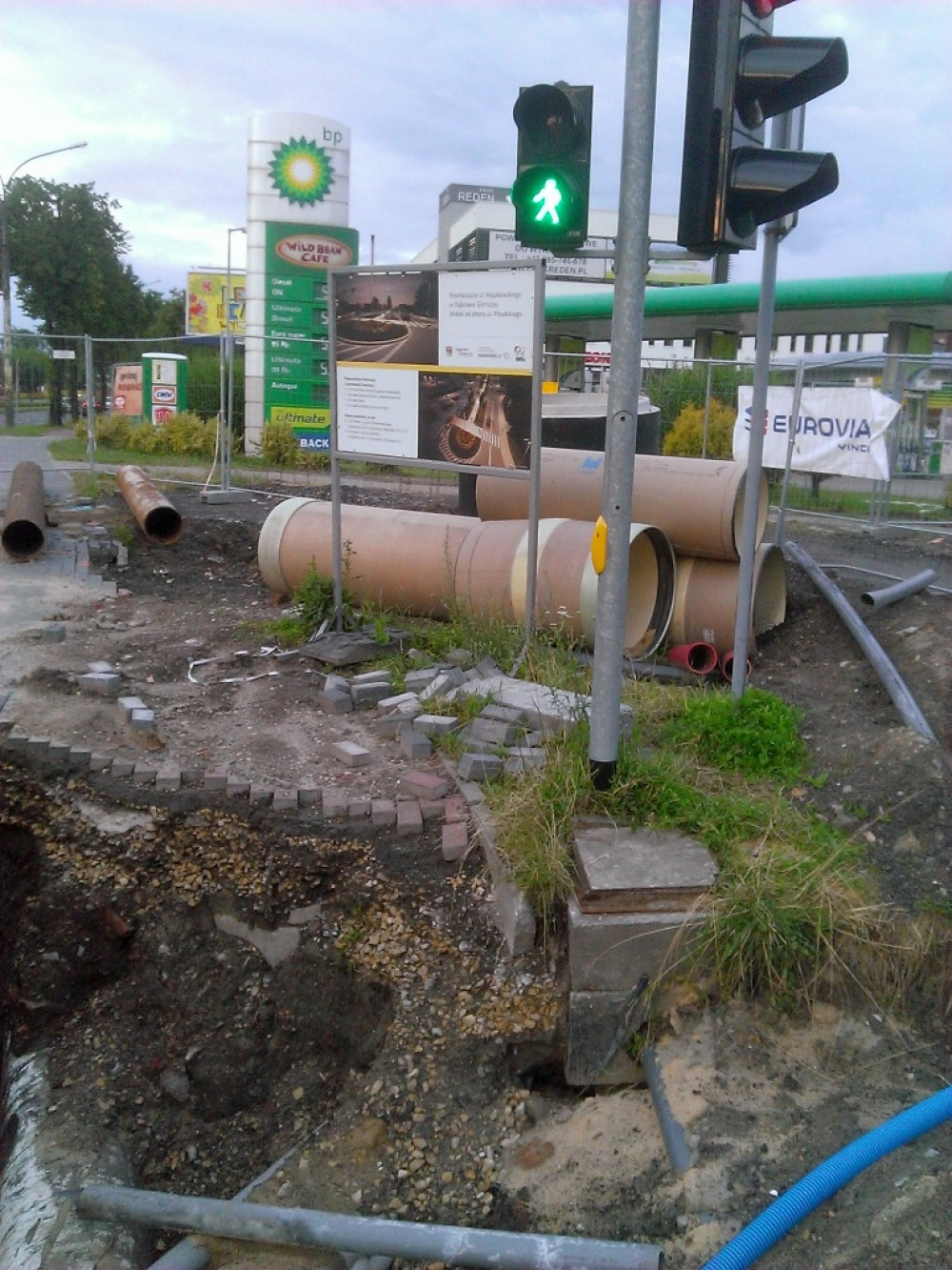 Sprawa w rozpoznaniu. Informuję, iż działanie przedmiotowego sygnalizatora nie wpływa na czasy przejazdu dla poszczególnych grup kołowych poruszających się po skrzyżowaniu. Zgodnie z zatwierdzoną tymczasową organizacją ruchu sygnalizator ten pozostał w celu ułatwienia wyjazdu pojazdów ciężarowych z budowy. W chwili obecnej w miejscu wyjazdy trwa wymiana infrastruktury podziemnej niemniej jednak po zasypaniu wykopu kruszywem w dalszym ciągu stanowić będzie komunikację pojazdów budowy z drogą publiczną. Ponadto informuję iż wyłączenie sygnalizatora wiązałoby się ze zleceniem zmiany programu sygnalizacji oraz poniesieniem związanych z powyższym kosztów.